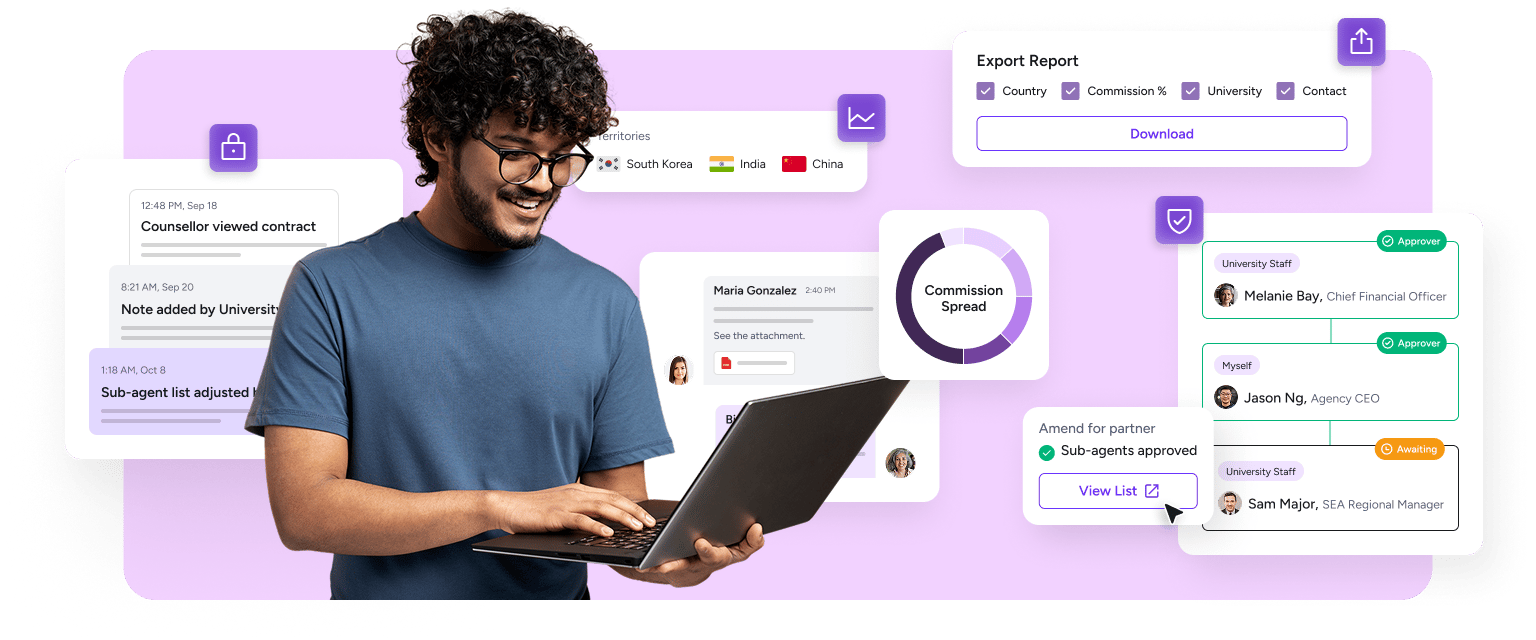 No more lengthy email chains for simple requests. Ensure you earn commission for all students your agency places.