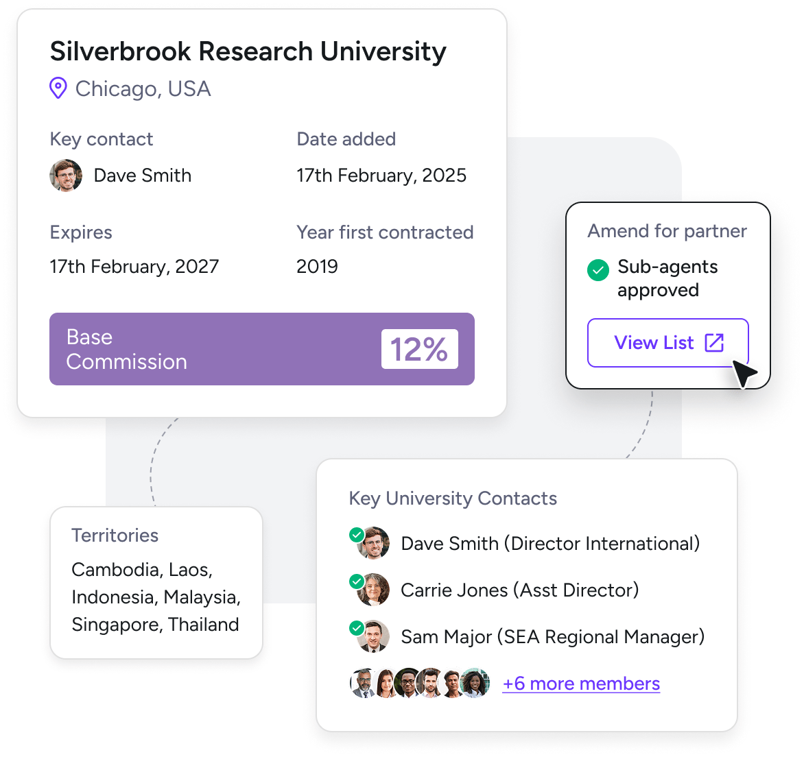 Stop relying on admin staff checking spreadsheets for crucial business data. Know which universities pay you what commission, and when your contracts expire.